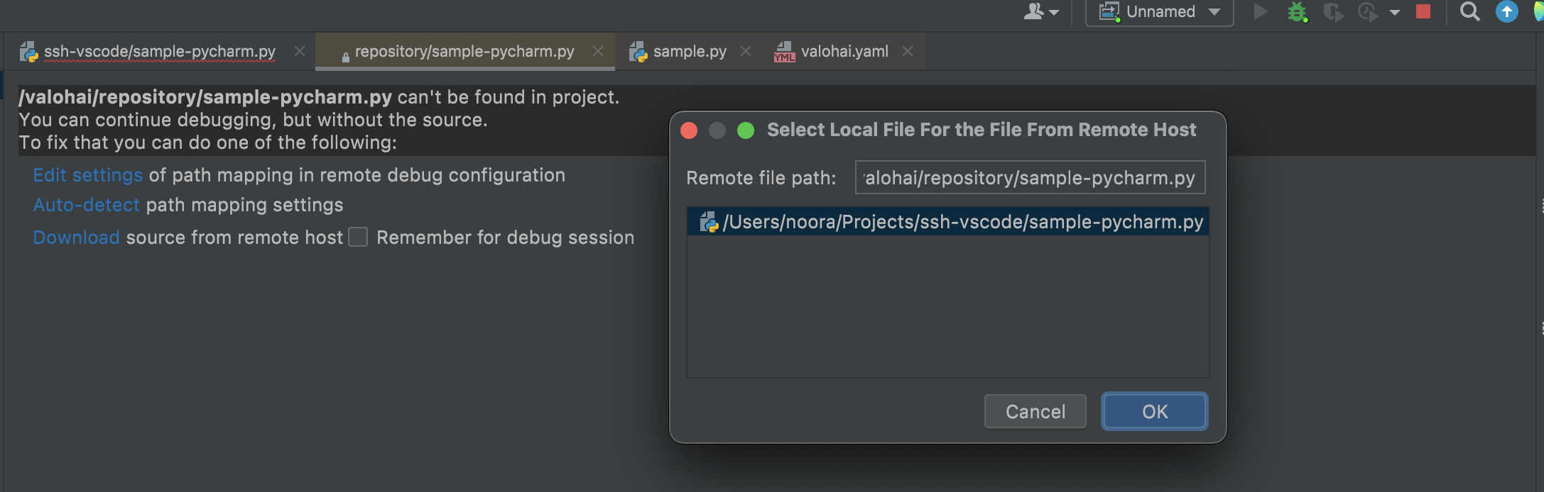 * **Name:** `Valohai Remote Debug`