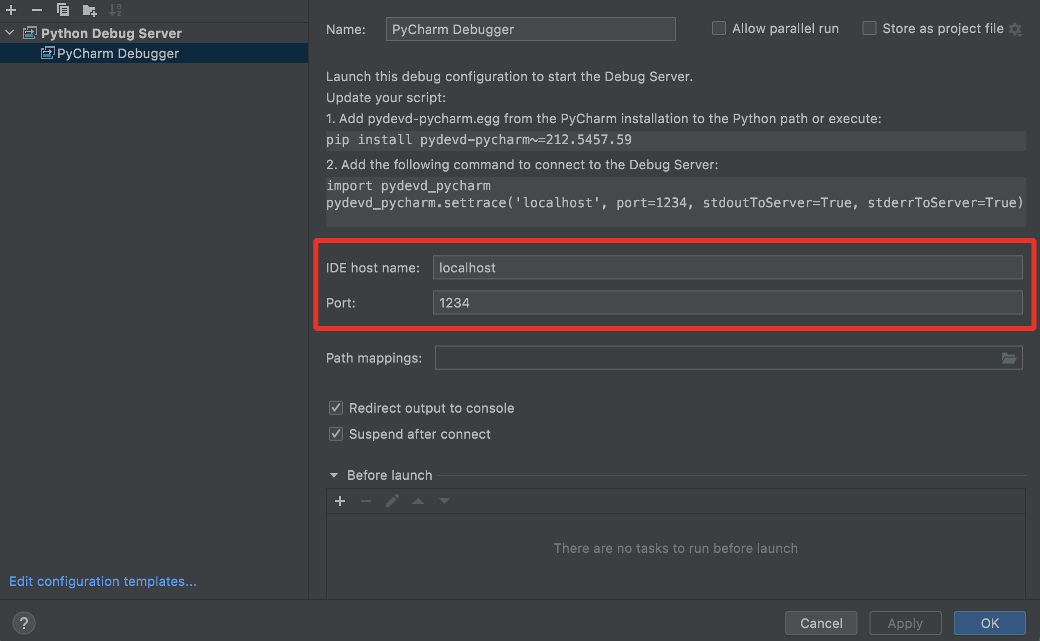 ### Configure PyCharm Debug Server <a href="#configure-pycharm-debug-server" id="configure-pycharm-debug-server"></a>