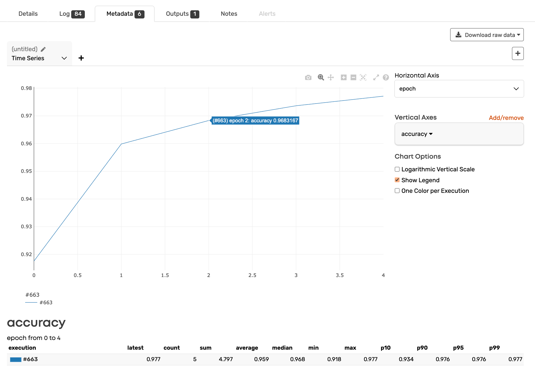 > :bulb:**Tip:** Metrics are not limited to numeric values only but you can log anything you can print from your jobs.