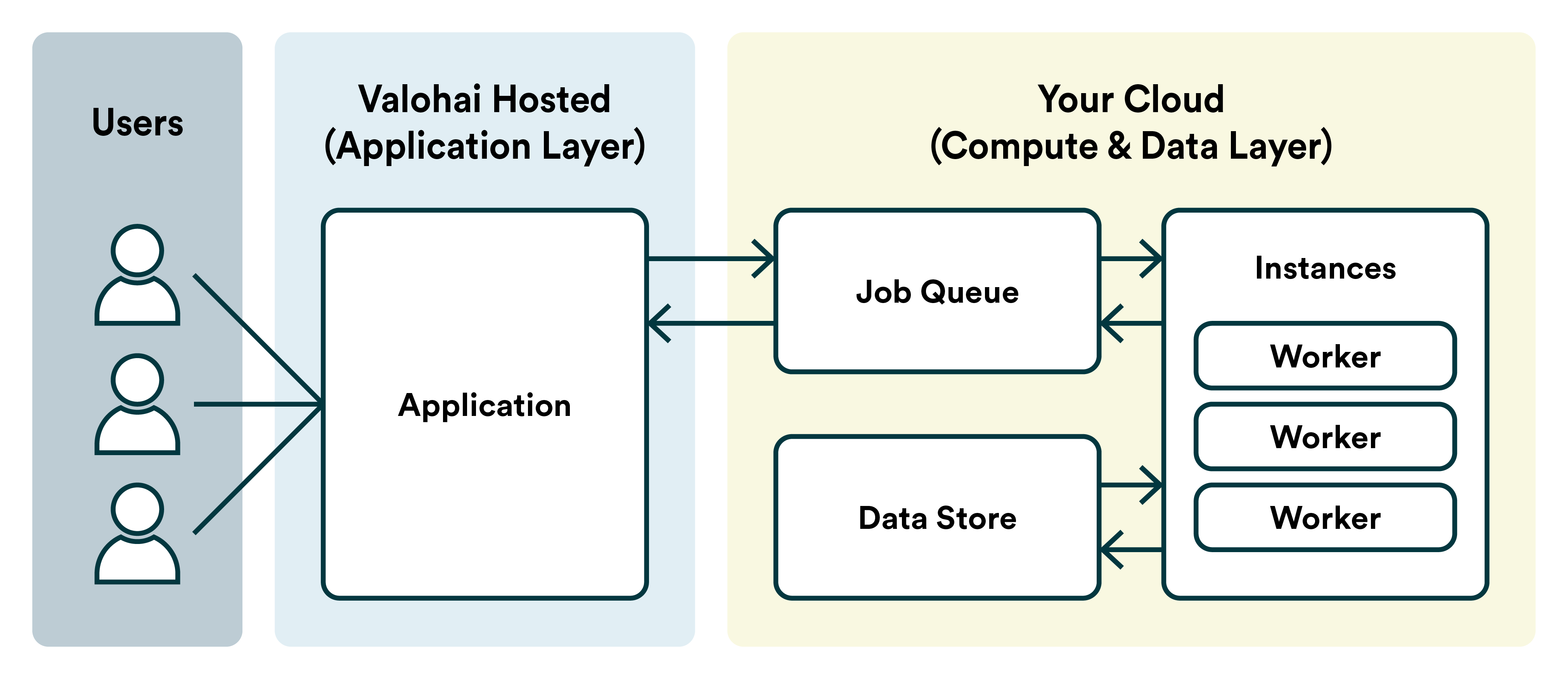 * Only high-level job metadata flow to Valohai's database